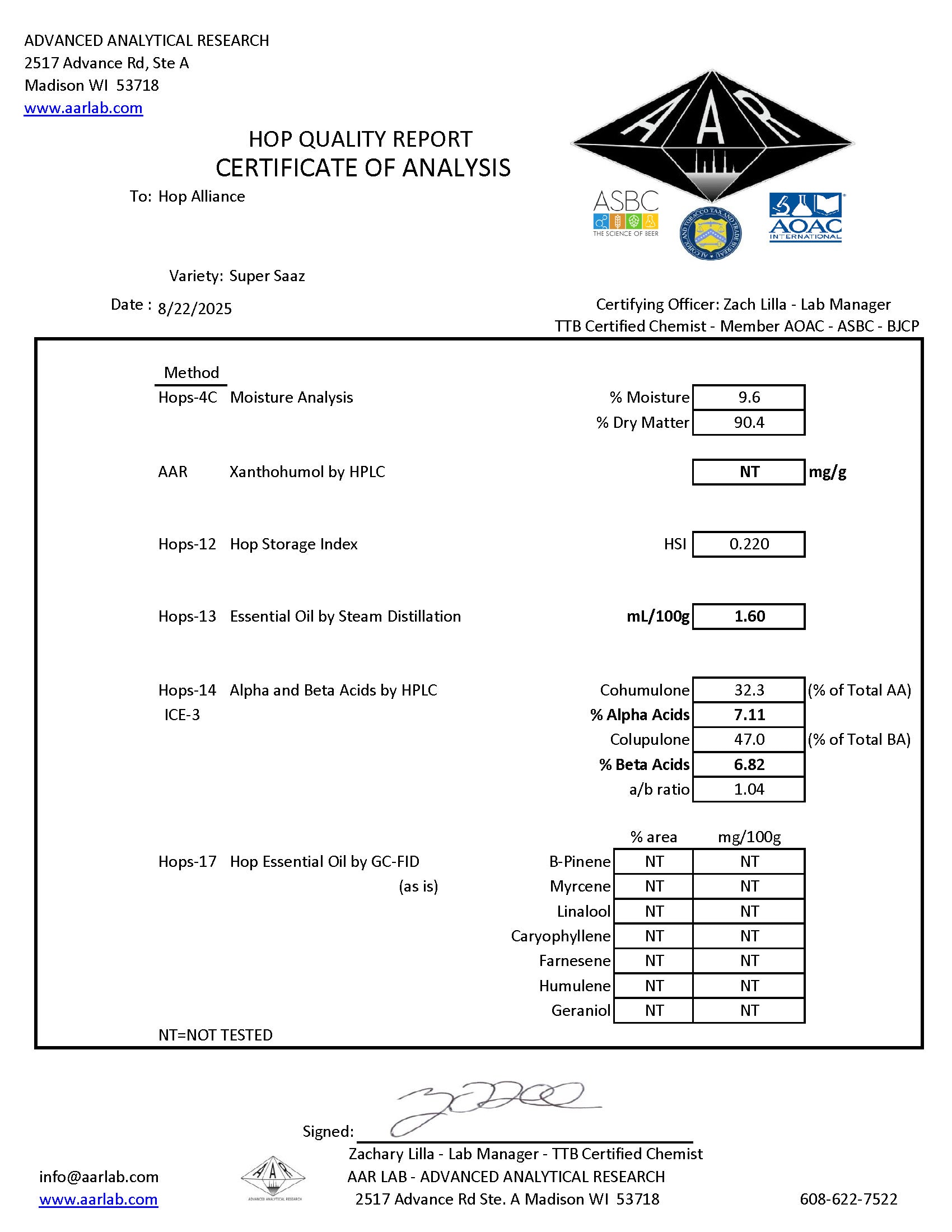 Co-Humulone 23% - 28%