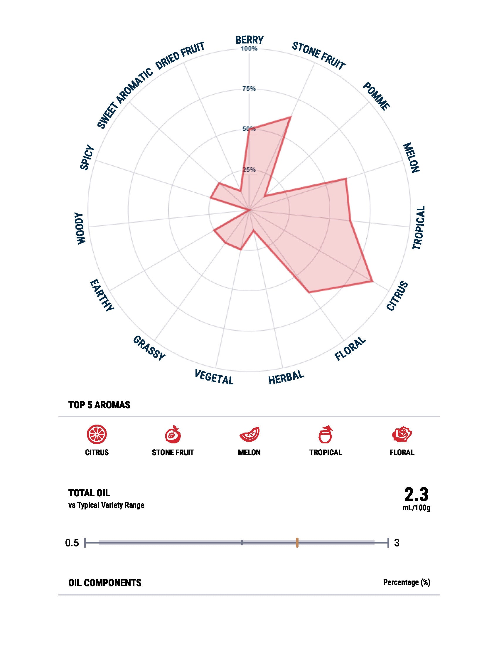 | Characteristics | Bright citrus flavors with earthy undertones, aromas of grapefruit, pine and herbs |