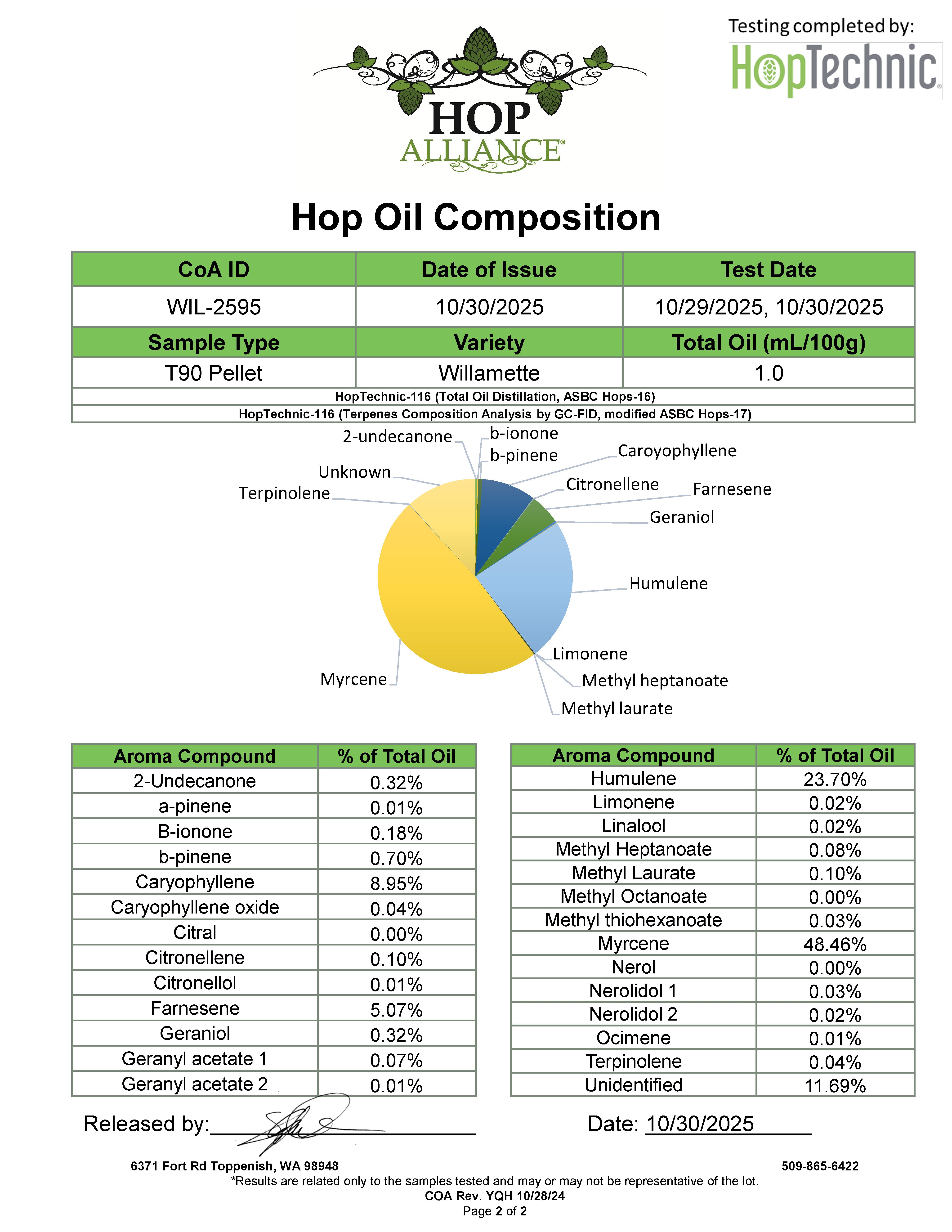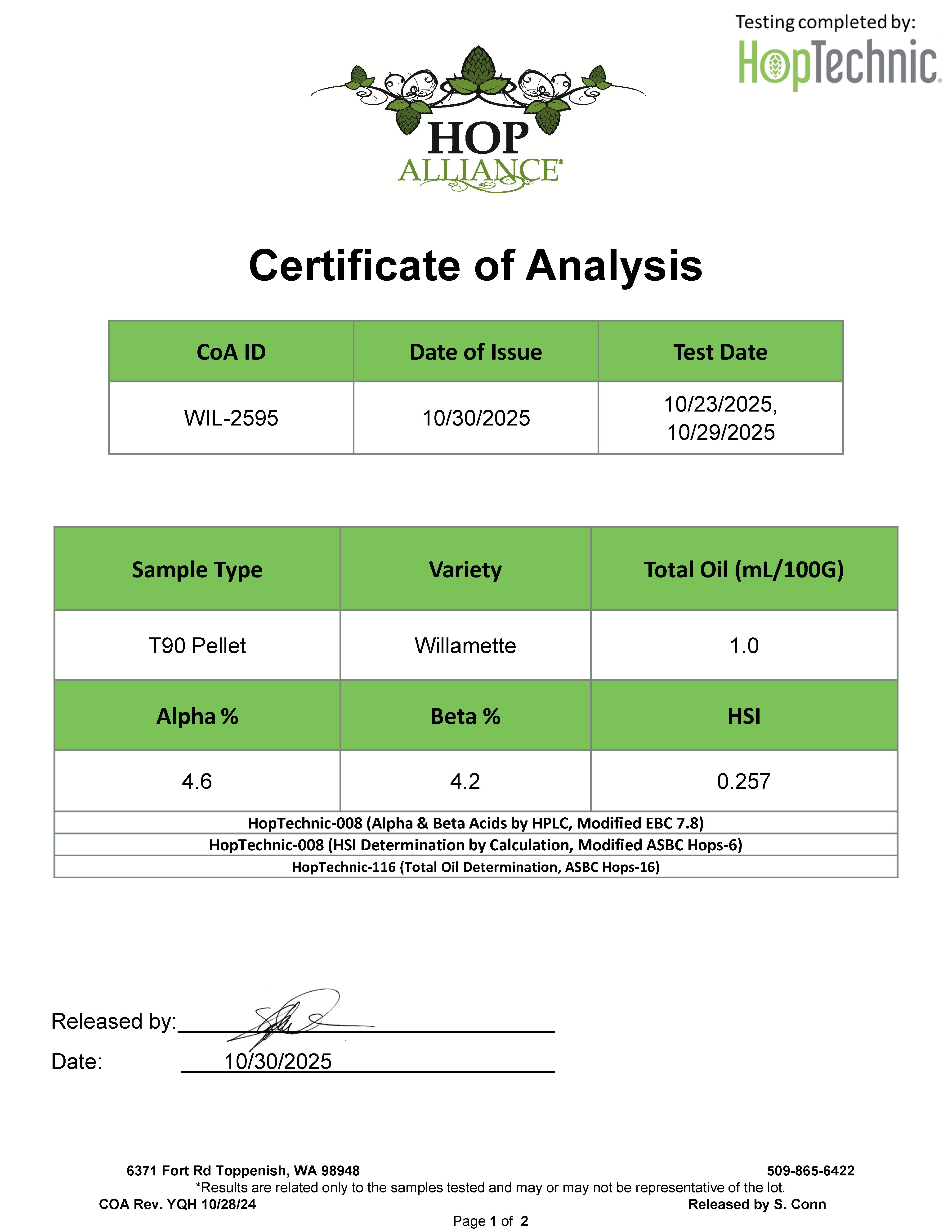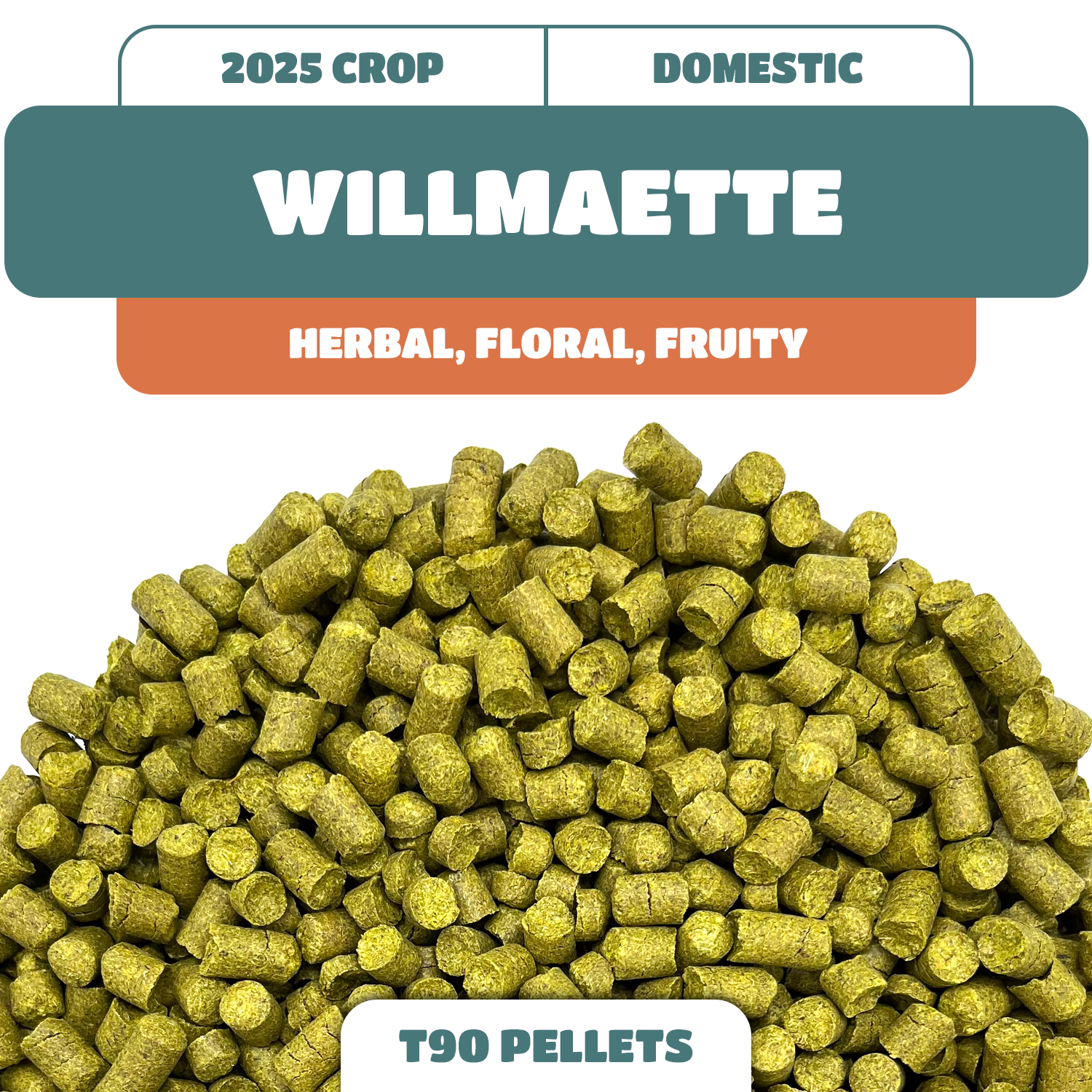 Willamette is a triploid aroma hop with its heritage being primarily derived from English variety Fuggle and Fuggle Tetraploid. It shares this same pedigree with its sister selection, Columbia. When brewed, Willamette features complex spiciness characterized by both herbal, floral and fruity notes.