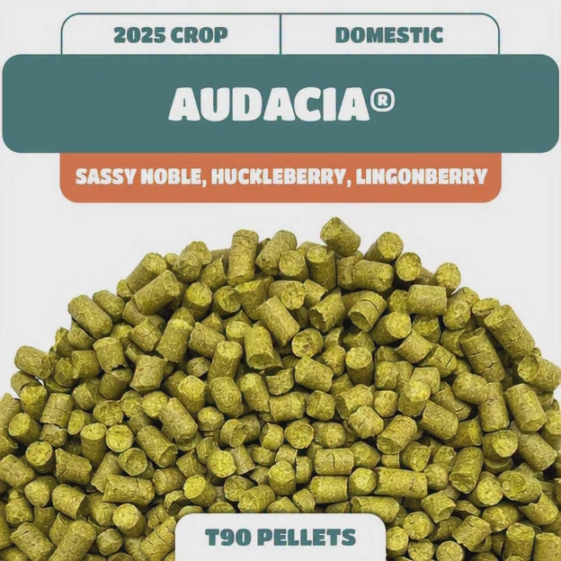 USA HopsTwo worlds merge to create a hop with class and sass. Hersbrucker mom meets nephew of Strata to create Audacia, a hop that thrives in IPA — West Coast & Hazy — yet is classy enough to liven up hop-leaning lagers. Huckleberry, currant, lingonberry and pomegranate mingle with rose, lilac and lavender. Feels like a mid-summer picnic in the mid-latitudes!